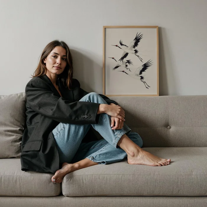 Ürün: Minimalist Balıkçıl Kuşları Ahşap Çerçeveli Tablo