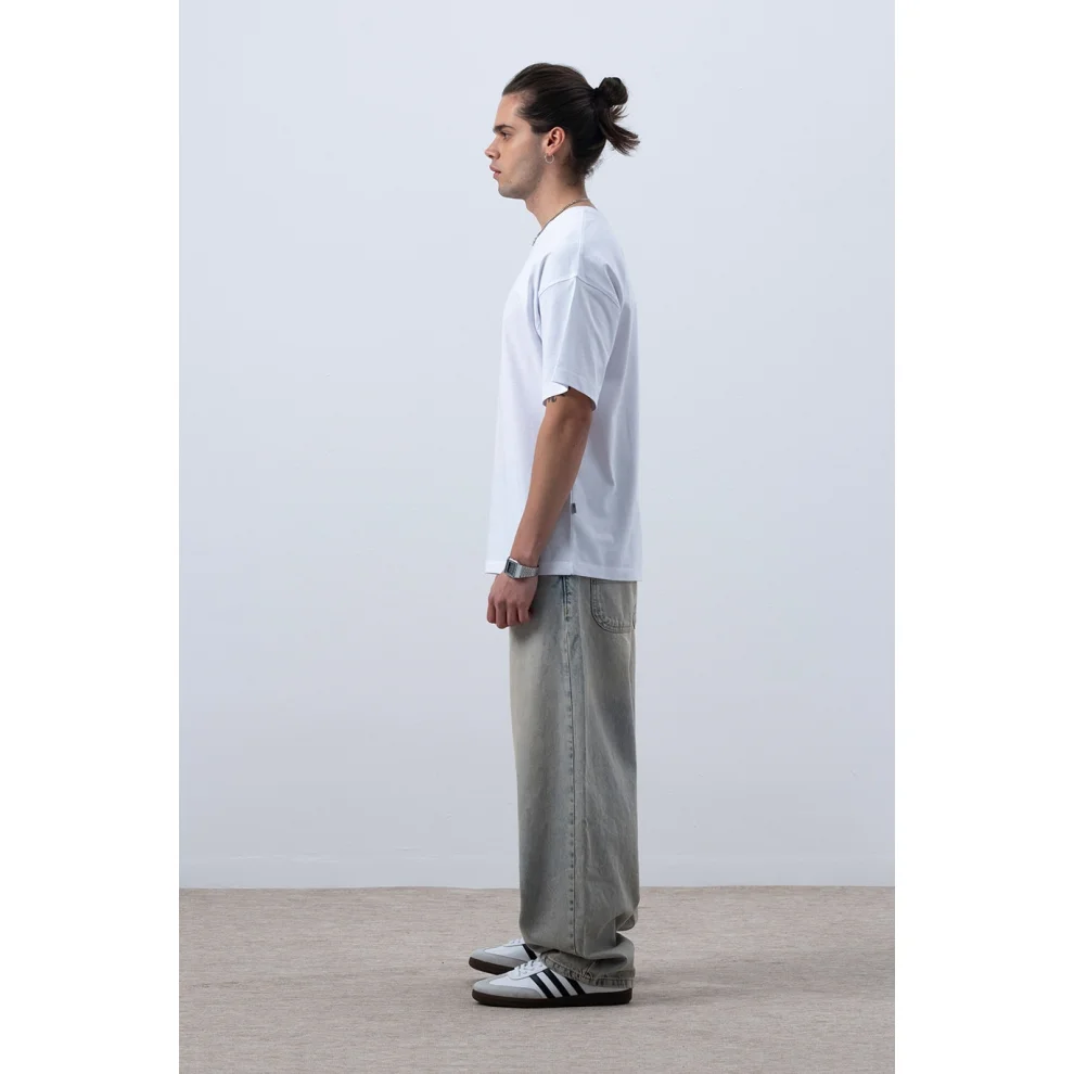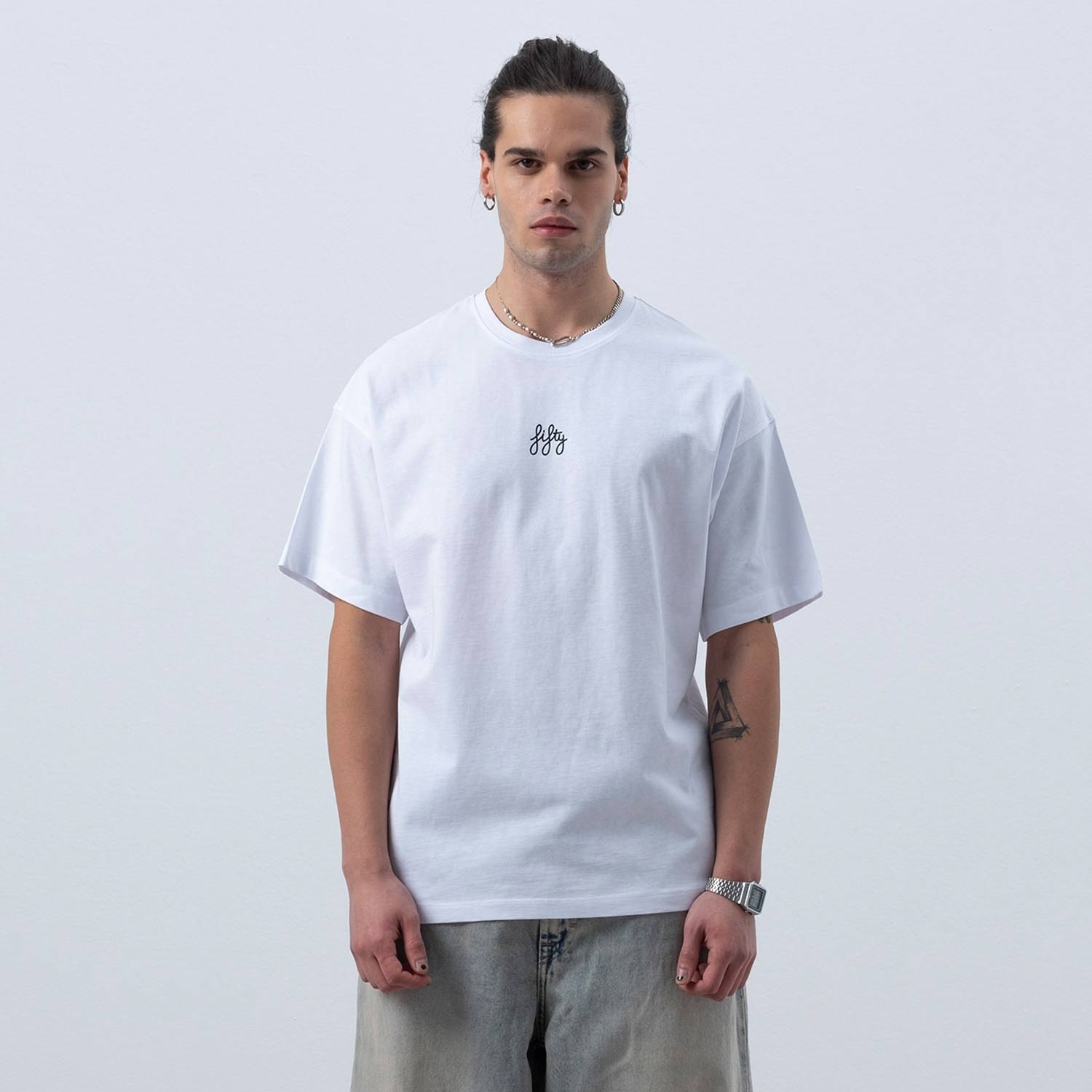 0 yakalı, geniş kesimli "FİFTY" baskılı t-shirt.