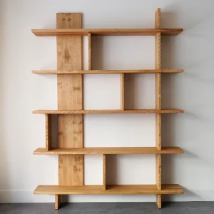• Kitaplık temel birincil işlevine bağlı kalırken, raflardaki yatay ve dikey bölmeler ürüne sergileme alanı imkanı veren bir dokunuş katmıştır.