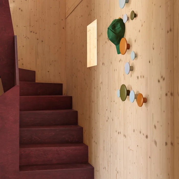The Dots askı sistemi duvara bir hareket kazandırmasının yanı sıra, yuvarlak formu sayesinde üzerine asılan kıyafetlerin deforme olmamasını da sağlamaktadır.