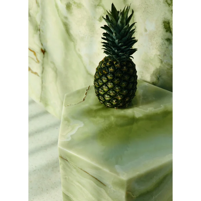 Taffy orta sehpa, modern tasarımı ve estetik dokusuyla her mekana zarif bir dokunuş katıyor. Üst yüzeyinde kullanılan yarı değerli oniks taşları, ışık geçirme özelliği sayesinde iç mekanlarınıza sıcak ve sofistike bir ambiyans sunar. Oniks taşlarının benzersiz dokusu, her bir parçanın kendine özgü olmasını sağlar, bu da her Taffy sehpasını eşsiz kılar.