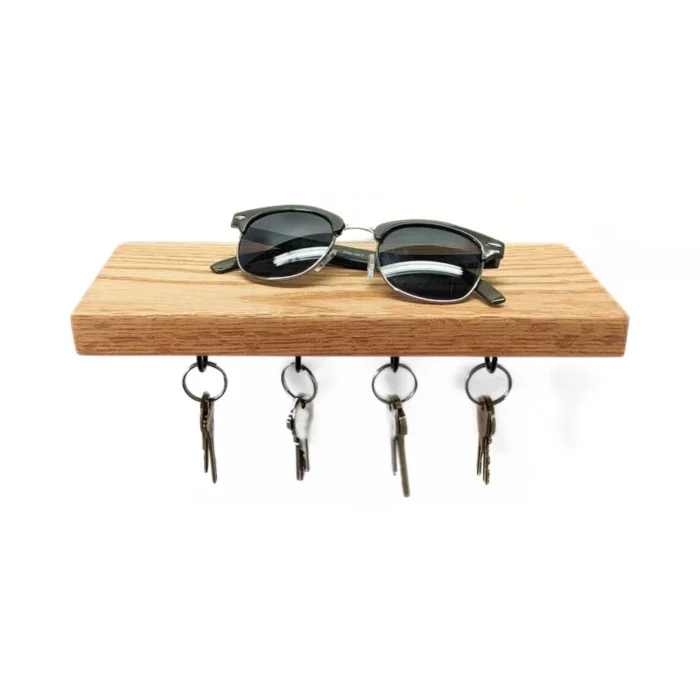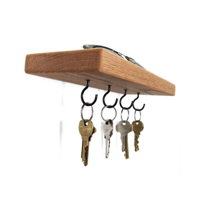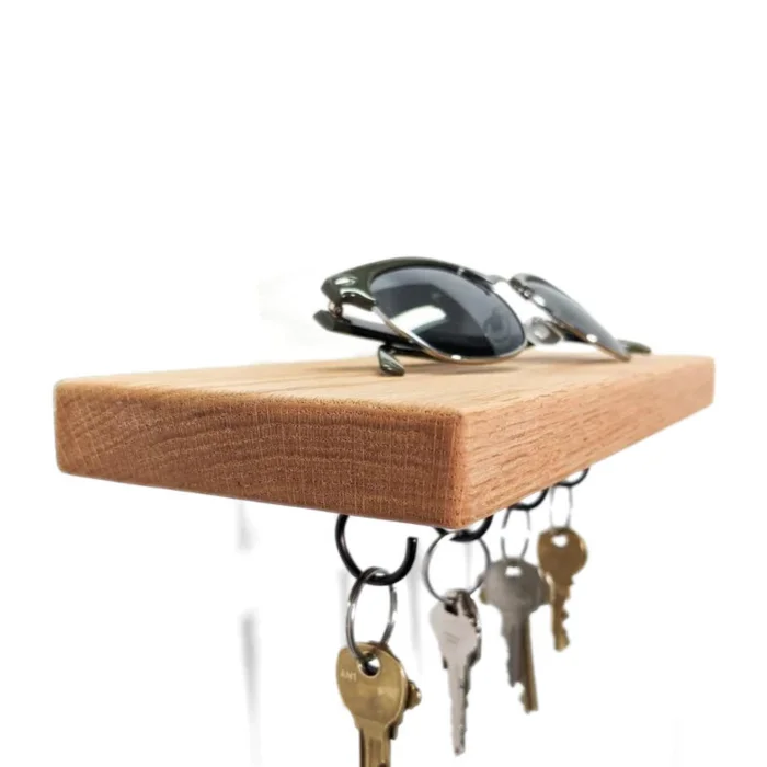 El yapımı ahşap raflı kancalı anahtarlık, hem işlevselliği hem de estetik görünümü ile evinizin girişini güzelleştirmek için tasarlandı. Yüksek kaliteli doğal ahşaptan üretilmiş bu anahtarlık, farklı genişlik seçenekleriyle her eve uyum sağlar. Üst kısmındaki raf, cüzdan, gözlük veya dekoratif eşyalarınızı koyabileceğiniz ekstra bir alan sunar. Alt kısmındaki sağlam kancalar ise anahtarlarınızı düzenli ve her zaman elinizin altında tutmanıza yardımcı olur. Masif kayın ağacından üretilmiş ve doğal yağ ile sonlandırılmıştır. Ürünlerimiz el işçiliği ile yerel zanaatkarlar tarafından üretilir. Masif ahşaptan üretildiğinden dolayı budak yeri ve renk tonu gibi ufak farklılıklar gözlemlenebilir. Ürün Boyutları: Derinlik : 12 cm Genişlik Small : 25 cm Genişlik Medium : 38 cm Genişlik Large : 50 cm Genişlik XLarge : 60 cm