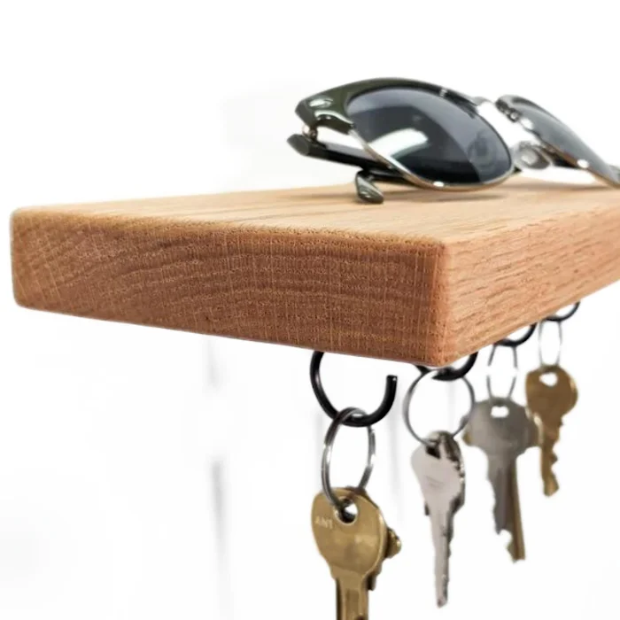 El yapımı ahşap raflı kancalı anahtarlık, hem işlevselliği hem de estetik görünümü ile evinizin girişini güzelleştirmek için tasarlandı. Yüksek kaliteli doğal ahşaptan üretilmiş bu anahtarlık, farklı genişlik seçenekleriyle her eve uyum sağlar. Üst kısmındaki raf, cüzdan, gözlük veya dekoratif eşyalarınızı koyabileceğiniz ekstra bir alan sunar. Alt kısmındaki sağlam kancalar ise anahtarlarınızı düzenli ve her zaman elinizin altında tutmanıza yardımcı olur. Masif kayın ağacından üretilmiş ve doğal yağ ile sonlandırılmıştır. Ürünlerimiz el işçiliği ile yerel zanaatkarlar tarafından üretilir. Masif ahşaptan üretildiğinden dolayı budak yeri ve renk tonu gibi ufak farklılıklar gözlemlenebilir. Ürün Boyutları: Derinlik : 12 cm Genişlik Small : 25 cm Genişlik Medium : 38 cm Genişlik Large : 50 cm Genişlik XLarge : 60 cm
