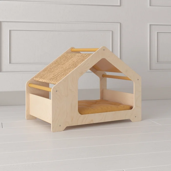 Huş ağacından yapılmış bu şık tasarım, kedi ve küçük ırk köpeklerinizin konfor ve eğlence ihtiyaçlarını bir araya getiriyor!
