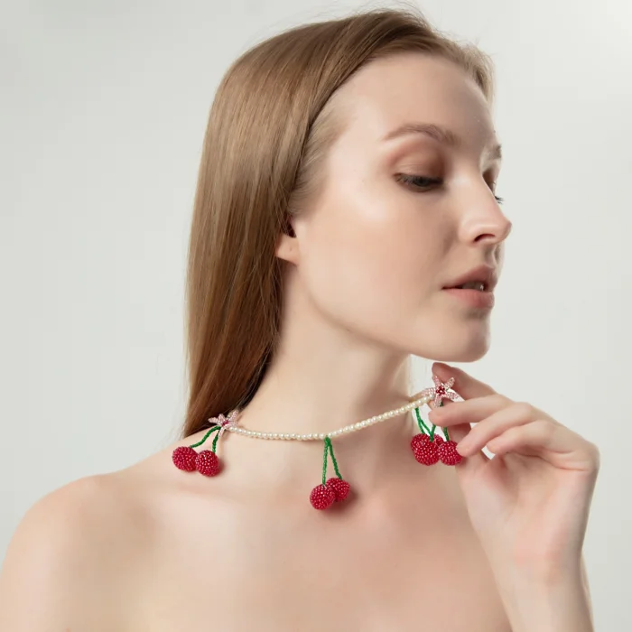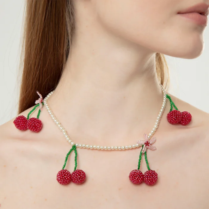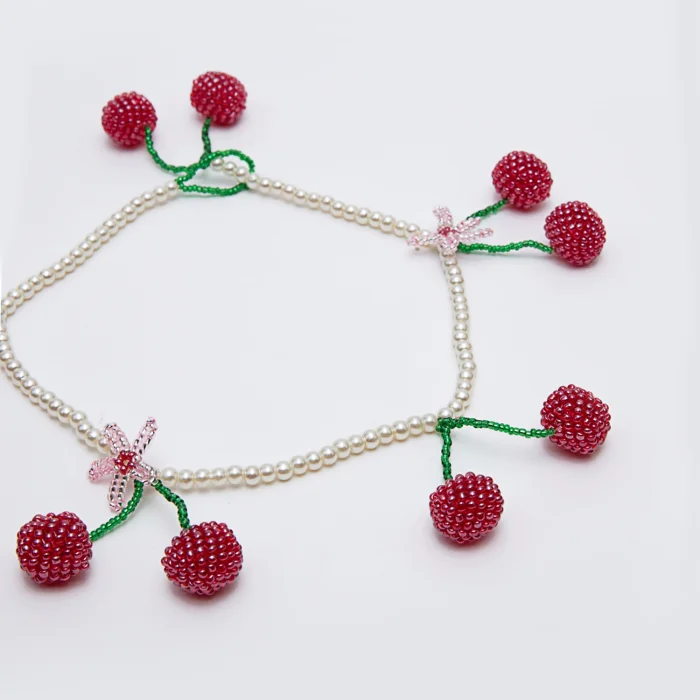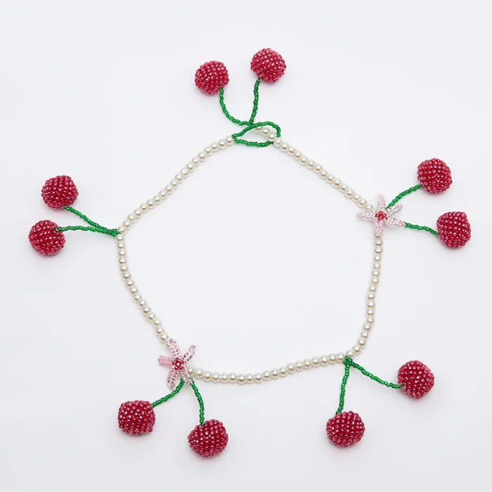 It is formed by knitting millimetric glass sand beads with fishing line for long hours. Custom design, Handmade.