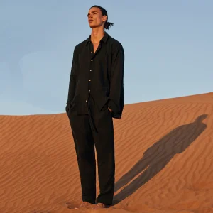 Shirt: -Relaxed fit, -Made of 100%Cotton muslin, -Spread collar, -Button fastening, -Buttoned cuffs, -Back center pleated, -Quick-drying, -Does not require ironing \ Pant: -Relaxed fit, -Made of 100%Cotton muslin, -Spread collar, -Button fastening, -Buttoned cuffs, -Back center pleated, -Quick-drying, -Does not require ironing
