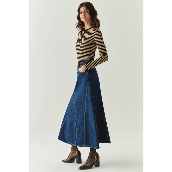 Product: Cotton Denim Regular Midi Skirt With Pockets