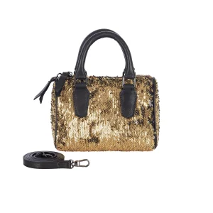 Stylish mini black/silver sequined ladies handbag. It has a leather strap for cross or shoulder use. Small daily necessities such as phone, wallet etc. can easily fit inside. Strap length 120cm.