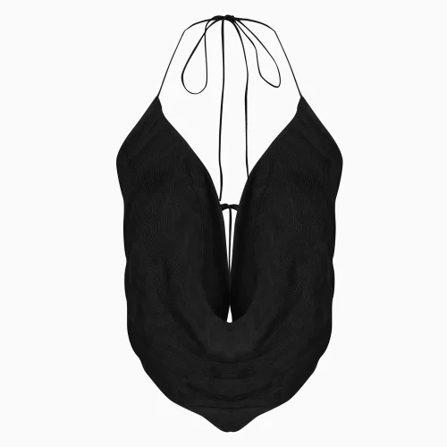 Flounced, degaje neckline, rope straps, backless, semi-transparent, flowing blouse.