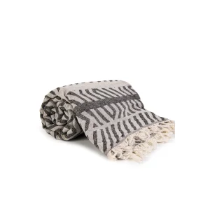 100% cotton, jacquard, 325 gr., 100x180 size, black & white, double sided, beach towel, loincloth. Produced in Denizli.