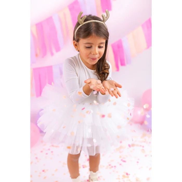 Off-white tutu dress with crewneck, backless and necktie detailing. There is a swimsuit lining with snaps under the tutu skirt.